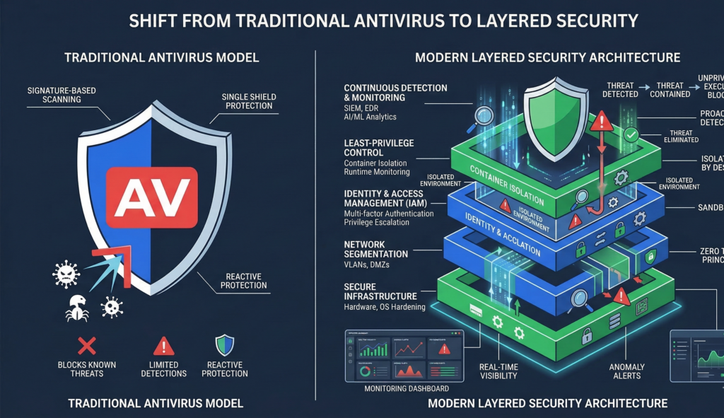 Antivirus remains useful, but it is no longer sufficient as a primary defense mechanism.