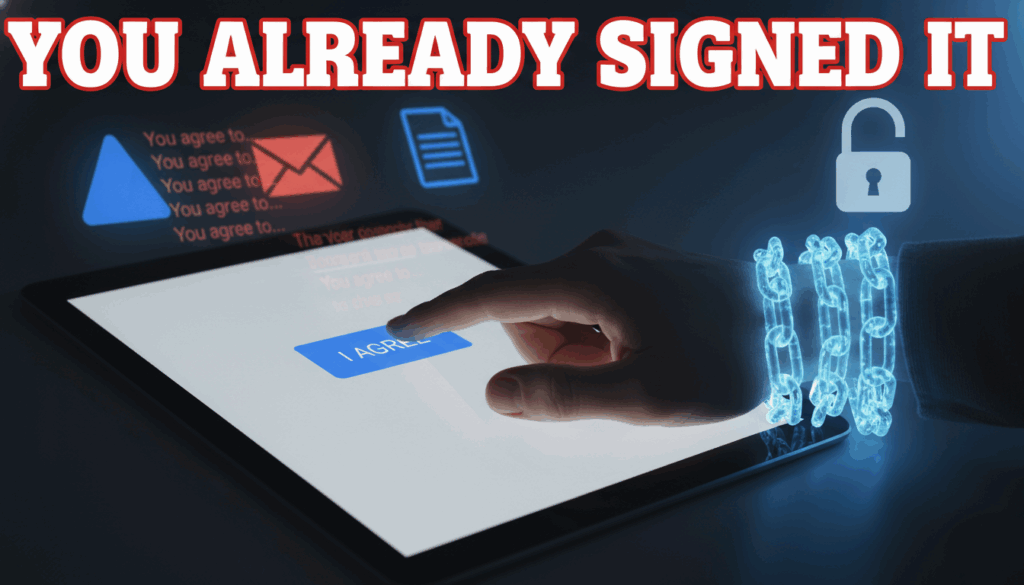 Of course, most of us haven’t — and that’s exactly where the trap lies. The narrator reveals that every casual click on “I Agree” is not just a formality. It’s a silent contract — a quiet surrender of rights most people never realized they were giving away.