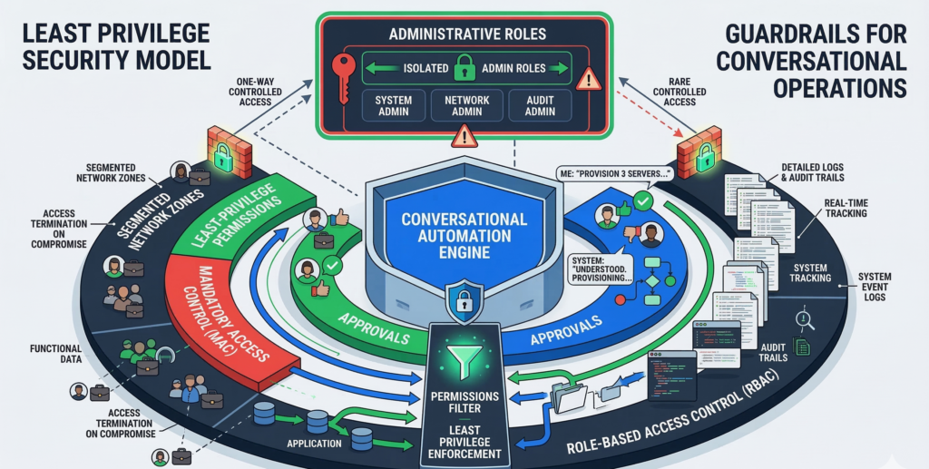 Conversational infrastructure must operate under the same least privilege principles that protect traditional system administration.